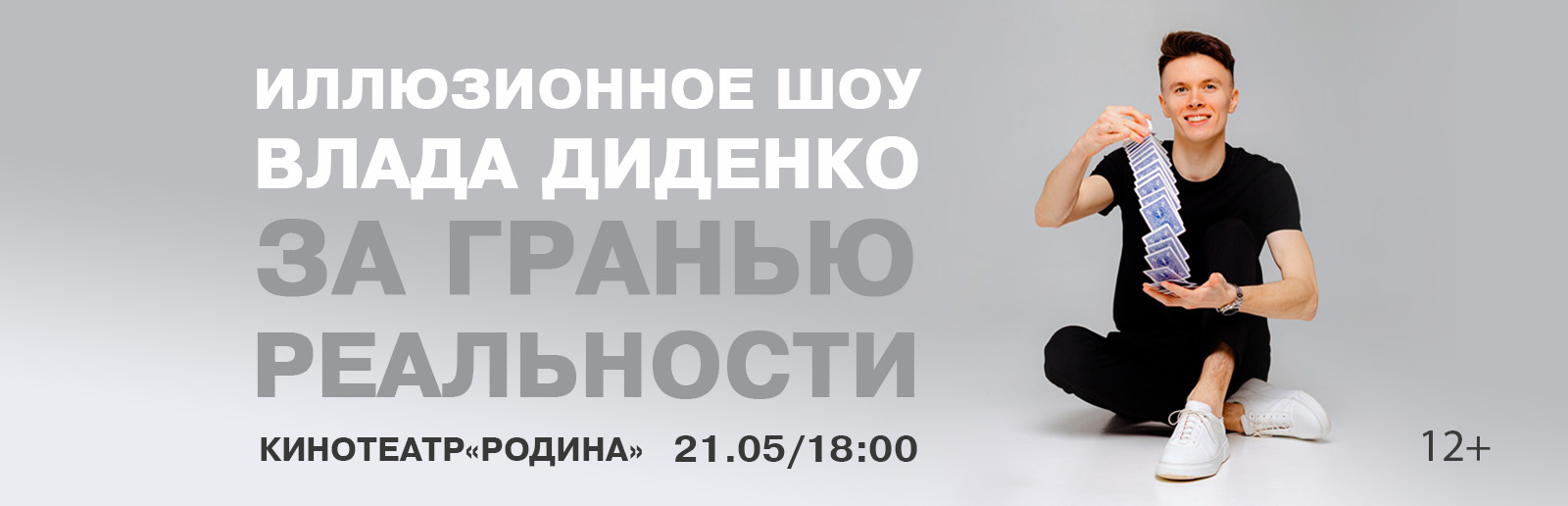 21 мая в 18.00 в кинотеатре «Родина» состоится иллюзионное сольное шоу Влада Диденко «За гранью реальности» в Могилеве.