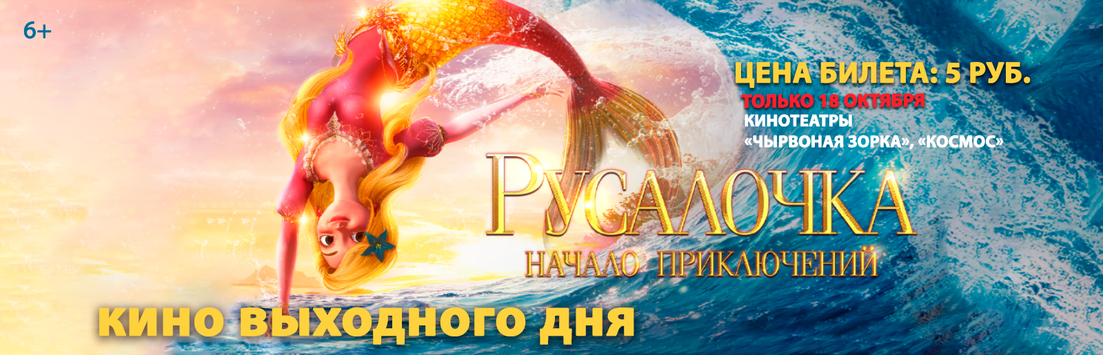 Только 18 октября в кинотеатрах «Космос», «Чырвоная Зорка» всего за 5 рублей вас ждут приключения по загадочному подводному миру вместе с Русалочкой.
