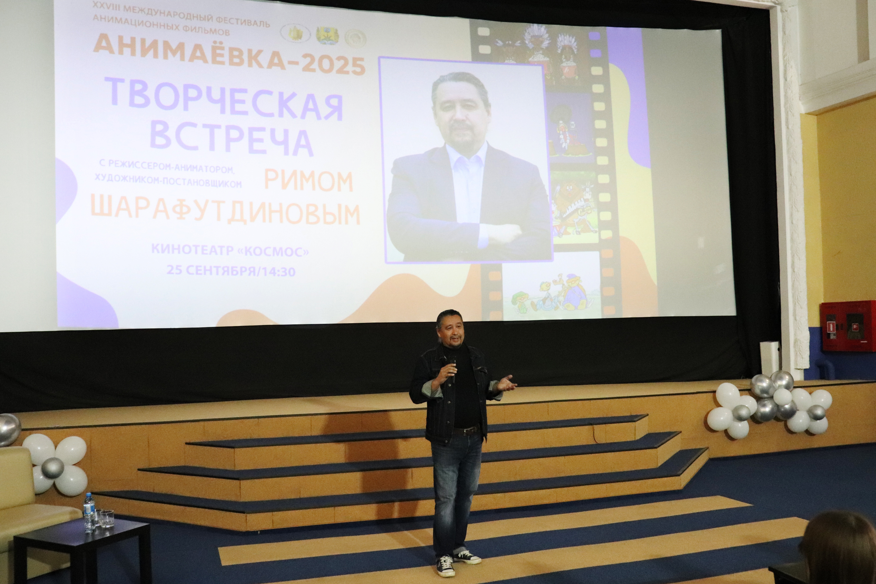 А в кинотеатре«Космос»состояласьтворческая встреча сРимом Шарафутдиновым– режиссером-аниматором, художником-постановщиком, почетным кинематографистом России.