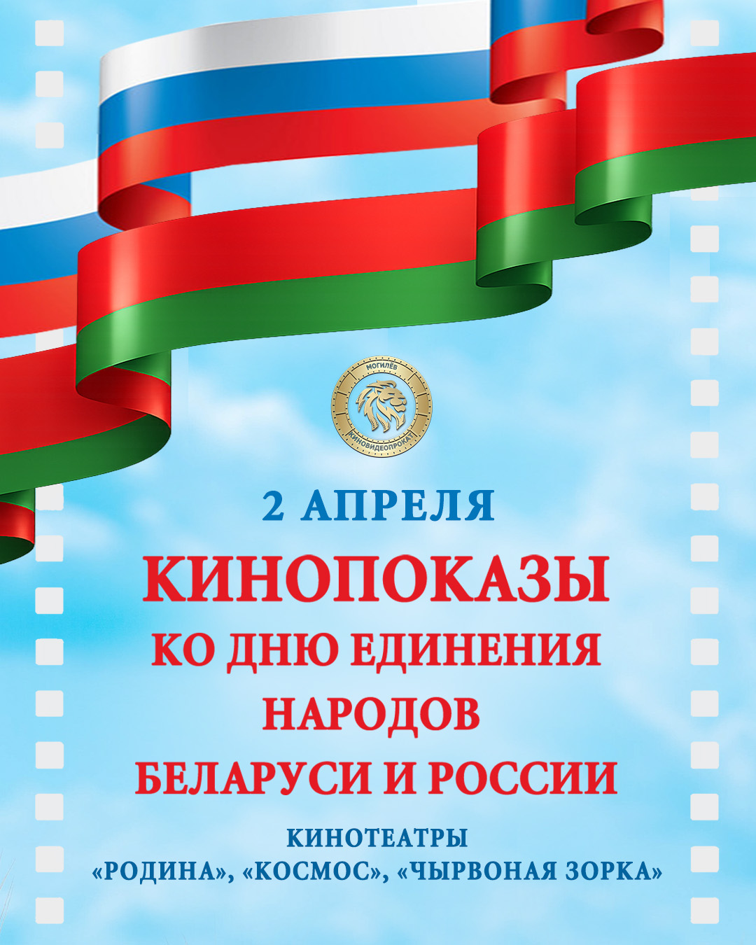 1 и 2 апреля кинотеатры «Чырвоная Зорка», «Родина», «Космос» Могилевского государственного предприятия «Киновидеопрокат» приглашают на кинопоказы и киномероприятия, приуроченные ко Дню единения народов Беларуси и России.