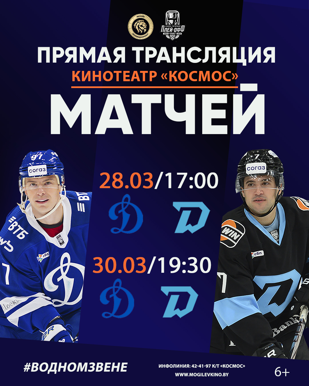 Кинотеатр «Космос» приглашает всех болельщиков на прямую трансляцию третьего матча между минским и московским «Динамо»!