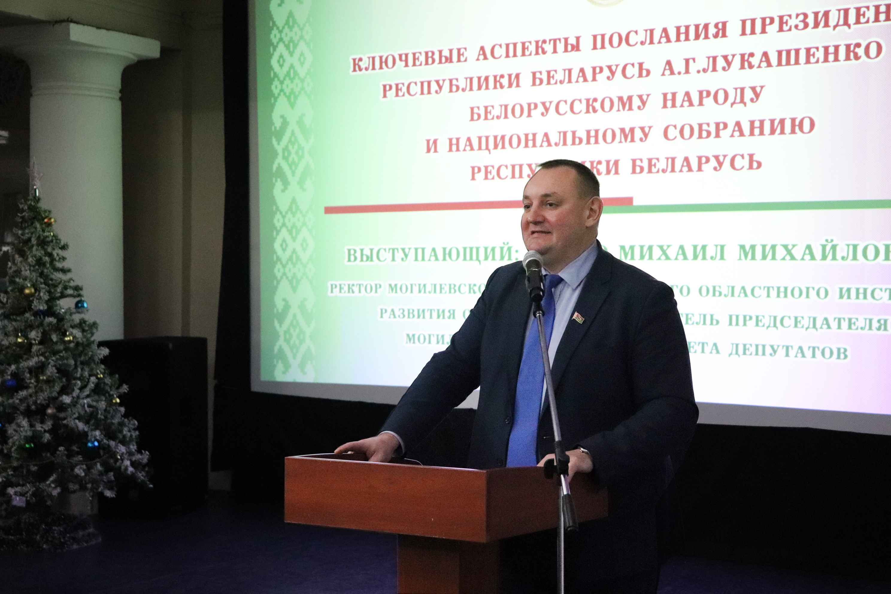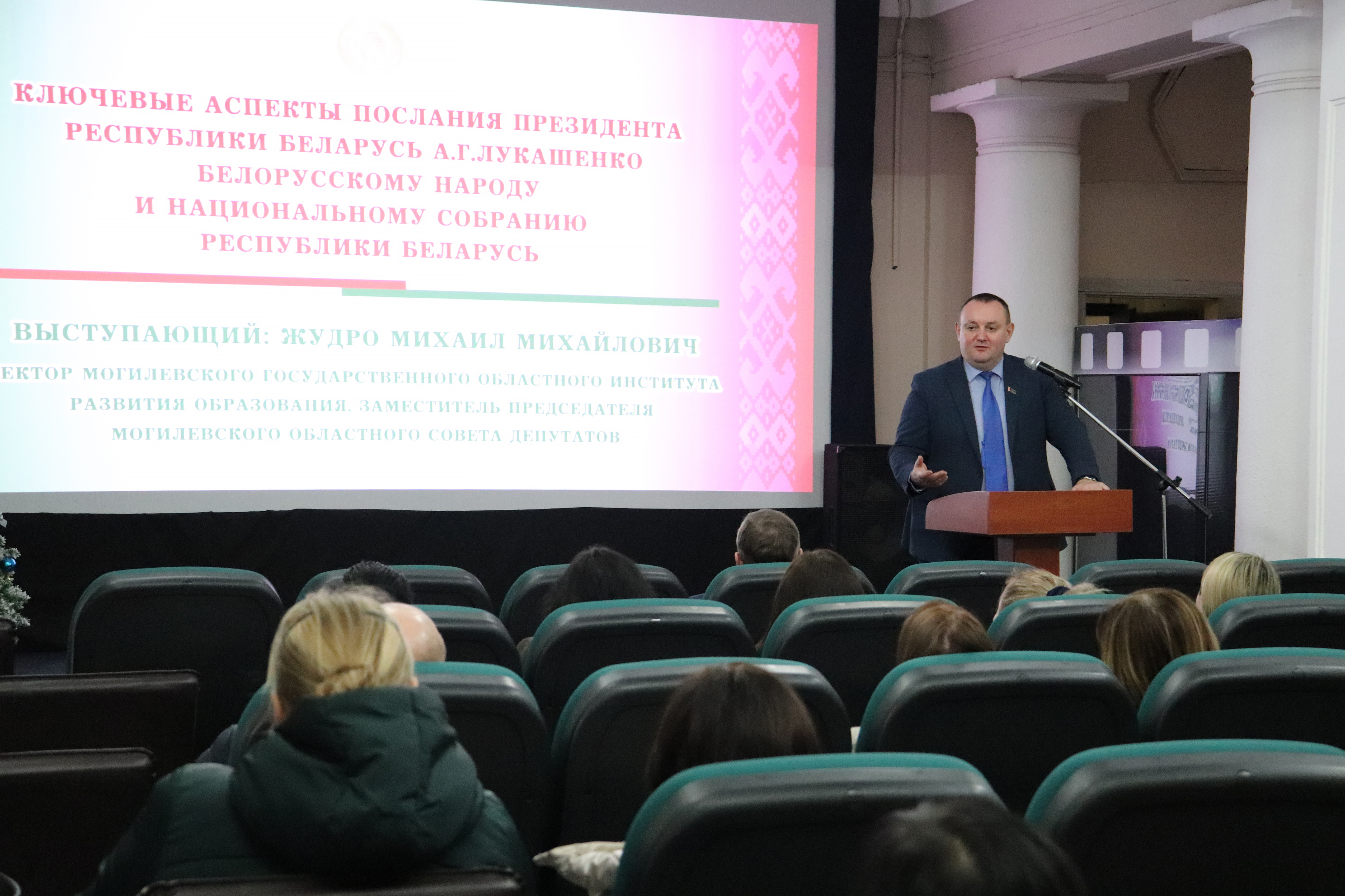 В рамках мероприятия выступил ректор Могилевского областного института развития образования, заместитель председателя Могилевского областного Совета депутатов Михаил Михайлович Жудро.