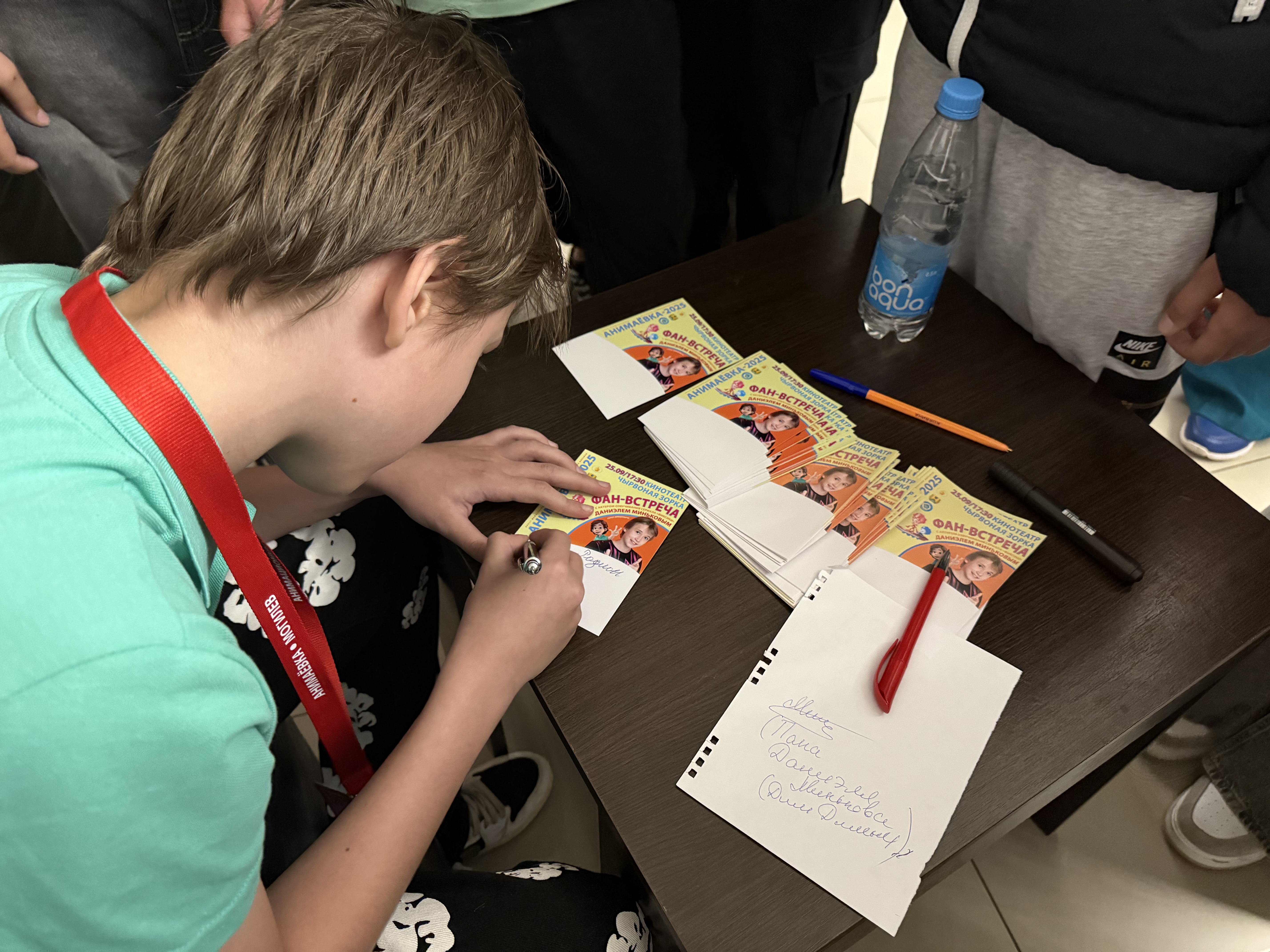 На встрече гости смогли не только пообщаться вживую с Даниэлем Миньковым и узнать море историй и секретов со съемок, но и получить личный автограф от любимого актера, а также увидеть премьеру 5 сезона «Фиксиков».