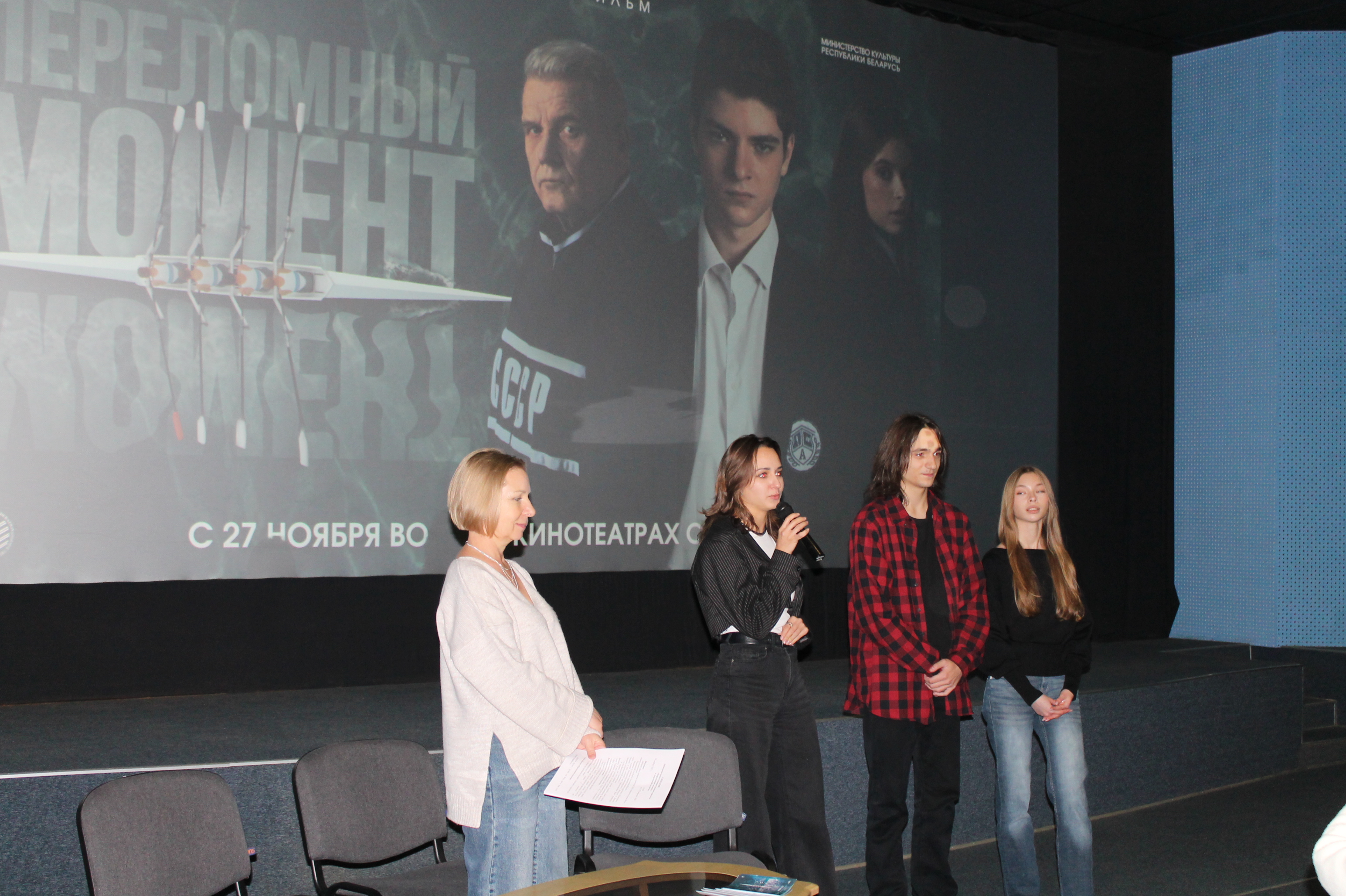 28 ноября в кинотеатре «Товарищ» КУП «Бобруйсккино» в рамках республиканской премьеры фильма «Переломный момент» состоялась творческая встреча со вторым режиссером фильма Соней Таряник, актерами Софьей Калининой и Романом Наумовичем.