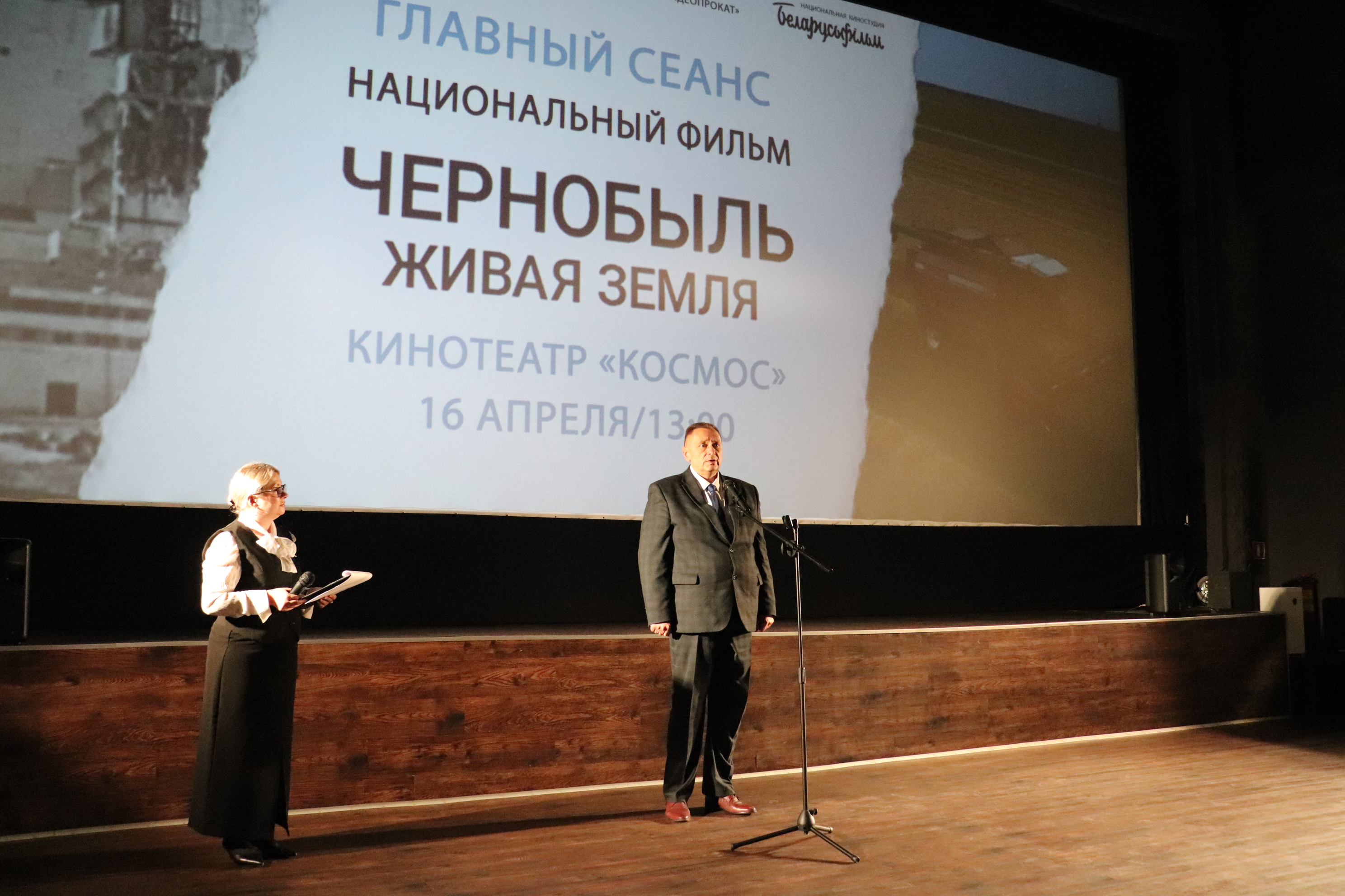Перед зрителями выступили начальник управления по преодолению последствий катастрофы на Чернобыльской атомной электростанции и чрезвычайным ситуациям Могилевского облисполкома Сергей Святославович Лазаревич; директор Государственного предприятия «Радон», ликвидатор последствий аварии на Чернобыльской АЭС, участник сьемок фильма Лазакович Евгений Леонидович; командир первого сводного отряда УВД Могилевского облисполкома, член Могилевского областного Совета ветеранов органов внутренних дел и внутренних войск, кавалер ордена Красной Звезды, полковник милиции в отставке Виктор Егорович Зайцев.