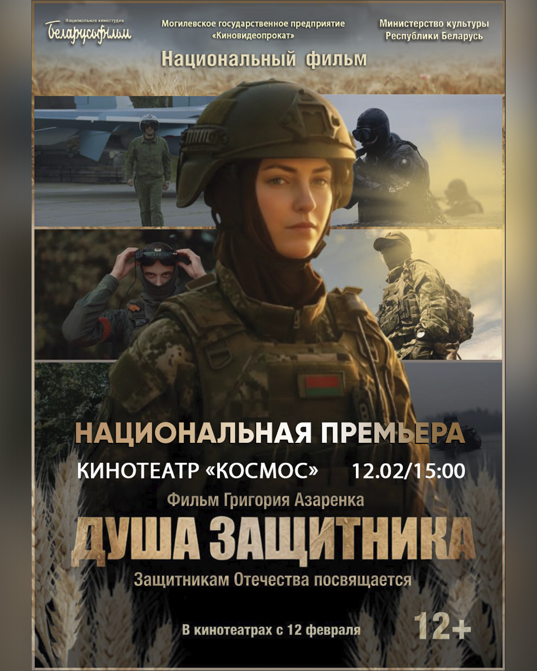 12 февраля вкинотеатре «Космос» пройдет главный сеанс Могилевской области национального фильма в неигровой форме «Душа защитника» (Беларусь, 2026, документальный, 39 мин, 12+).