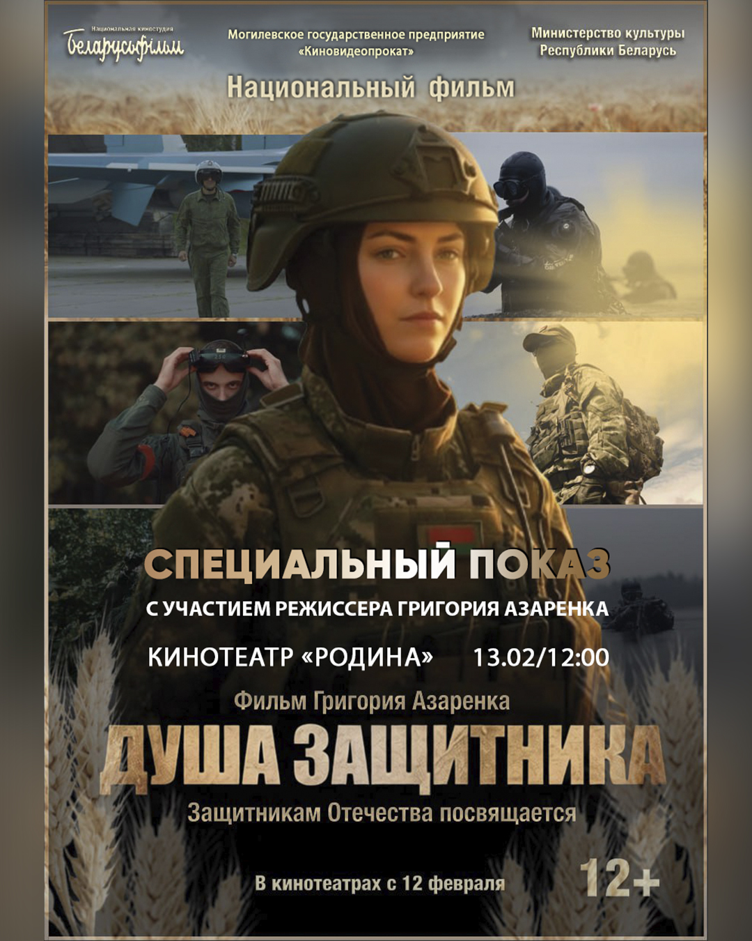 13 февраля в кинотеатре «Родина» состоится специальный показфильма «Душа защитника» с участием режиссера – Григория Азаренка.