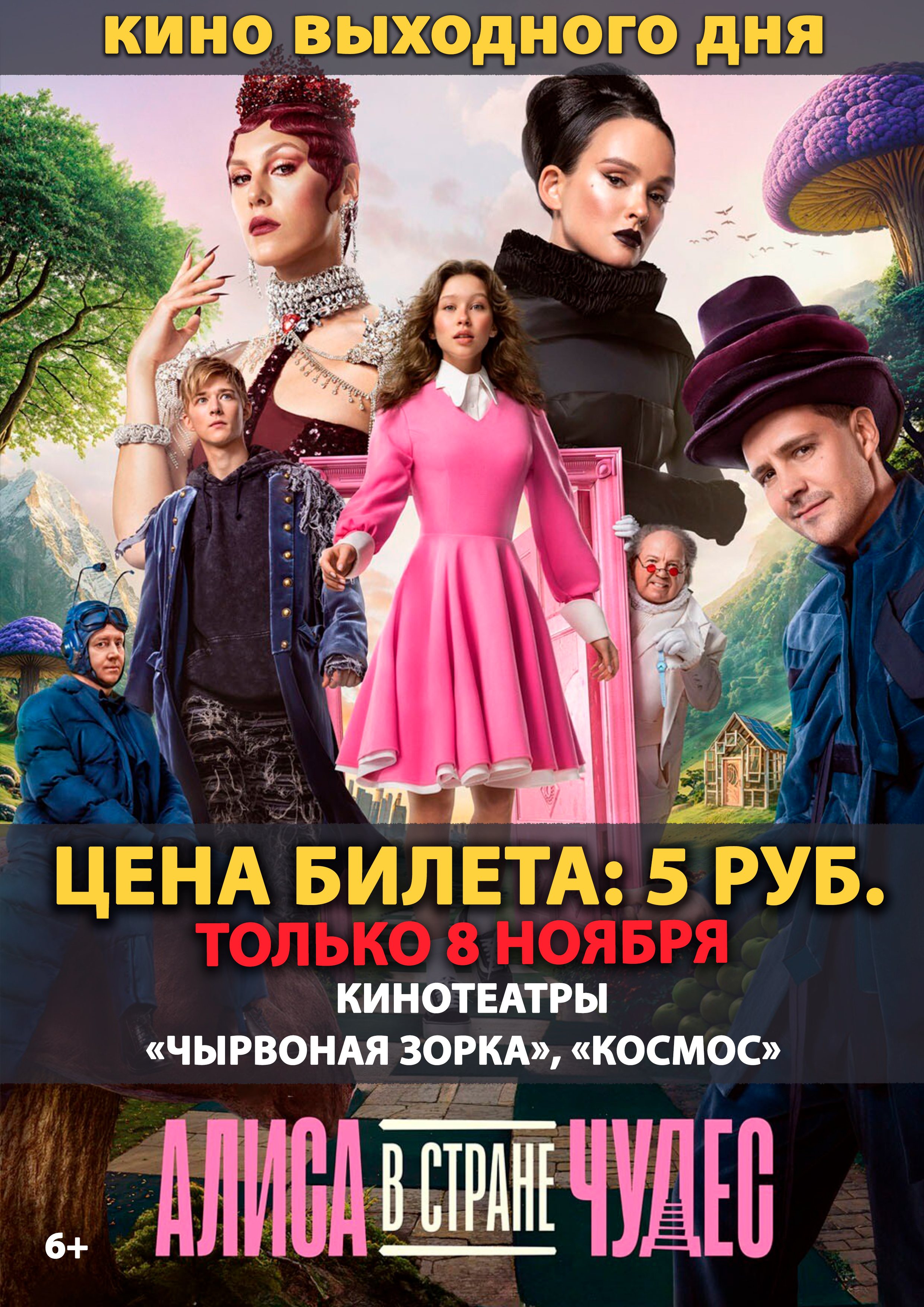 Только 8 ноября в кинотеатрах «Чырвоная Зорка» и «Космос» Могилевского государственного предприятия «Киновидеопрокат» отправимся в Страну чудес вместе с прекрасной Алисой всего за 5 рублей!