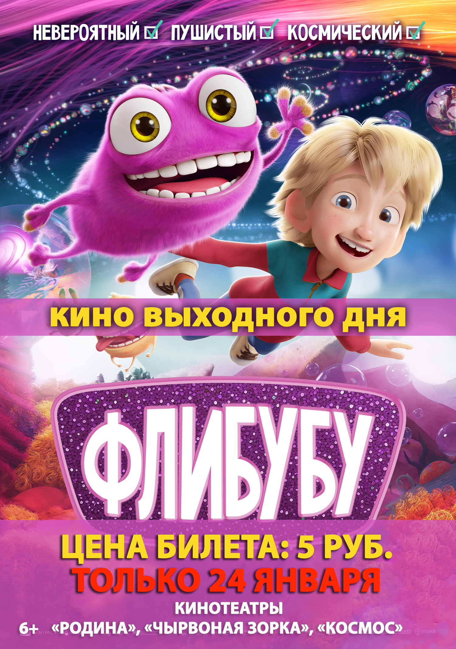 24 января в кинотеатрах «Родина», «Чырвоная Зорка», «Космос» мультфильм «Флибубу» всего за 5 рублей! Вас ждет захватывающее путешествие в удивительный мир вместе с пушистиком по имени Флибубу!