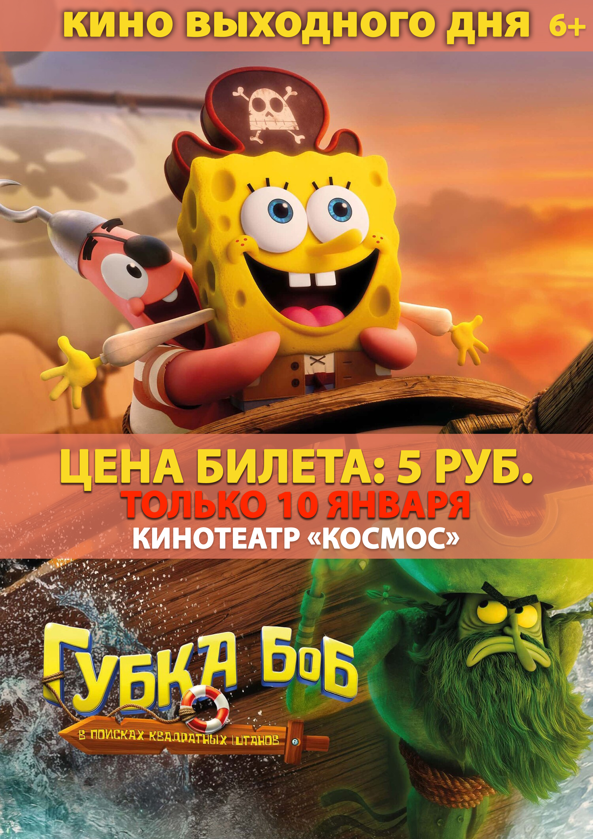 10 января в кинотеатре «Космос» мультфильм «Губка Боб: в поисках квадратных штанов» всего за 5 рублей!