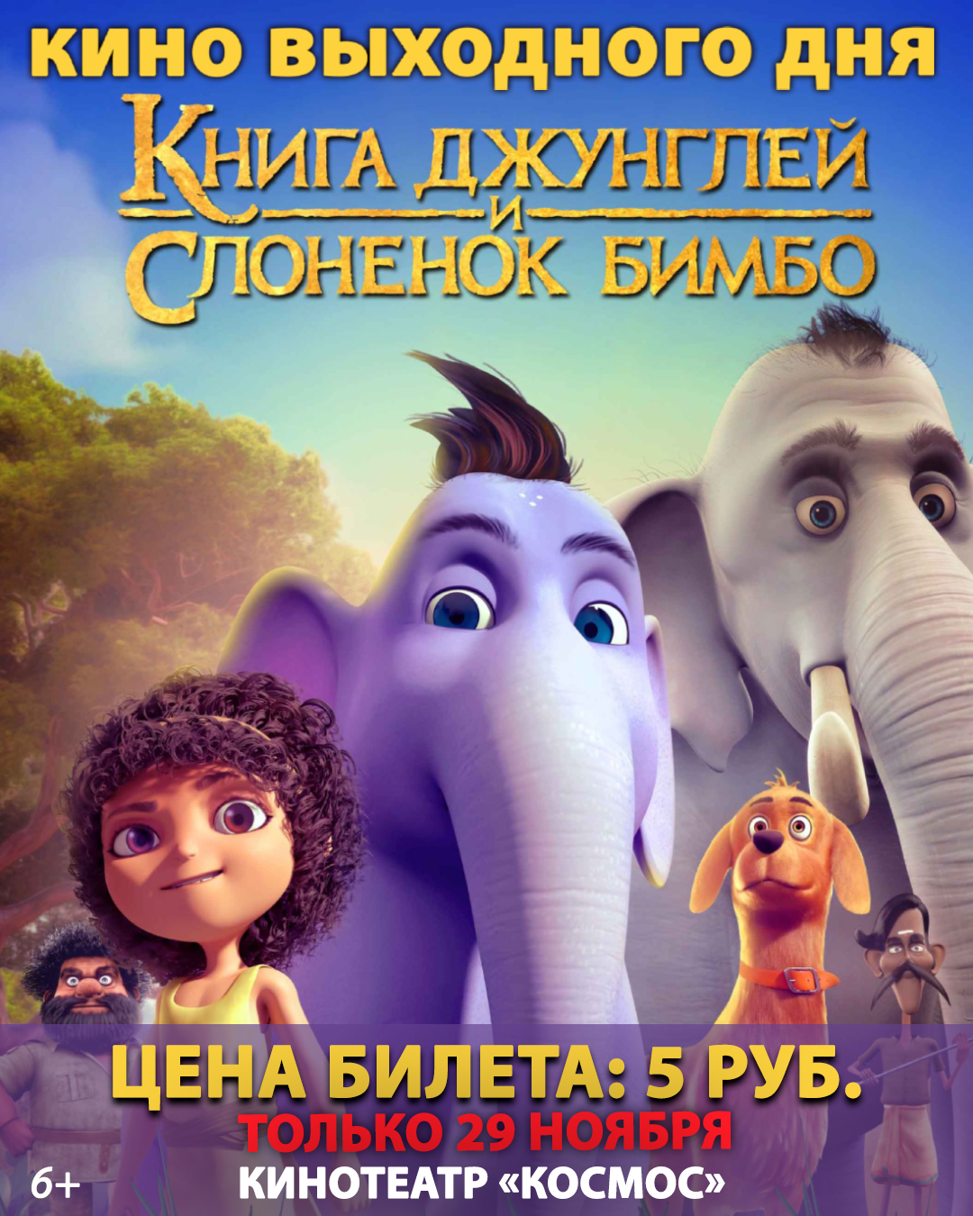 29 ноября в кинотеатре «Космос» вас ждет увлекательное путешествие в джунгли вместе с очаровательным Слоненком! Погрузитесь в мир приключений всего за 5 рублей.