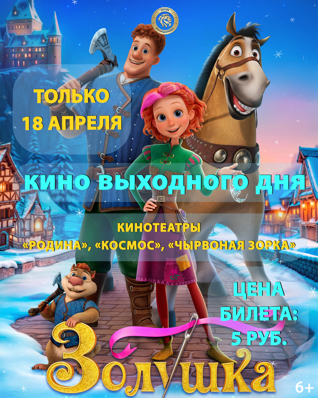 18 апреля мультфильм «Золушка. Тайна трех желаний» всего за 5 рублей в кинотеатрах «Родина», «Чырвоная Зорка» и «Космос»!