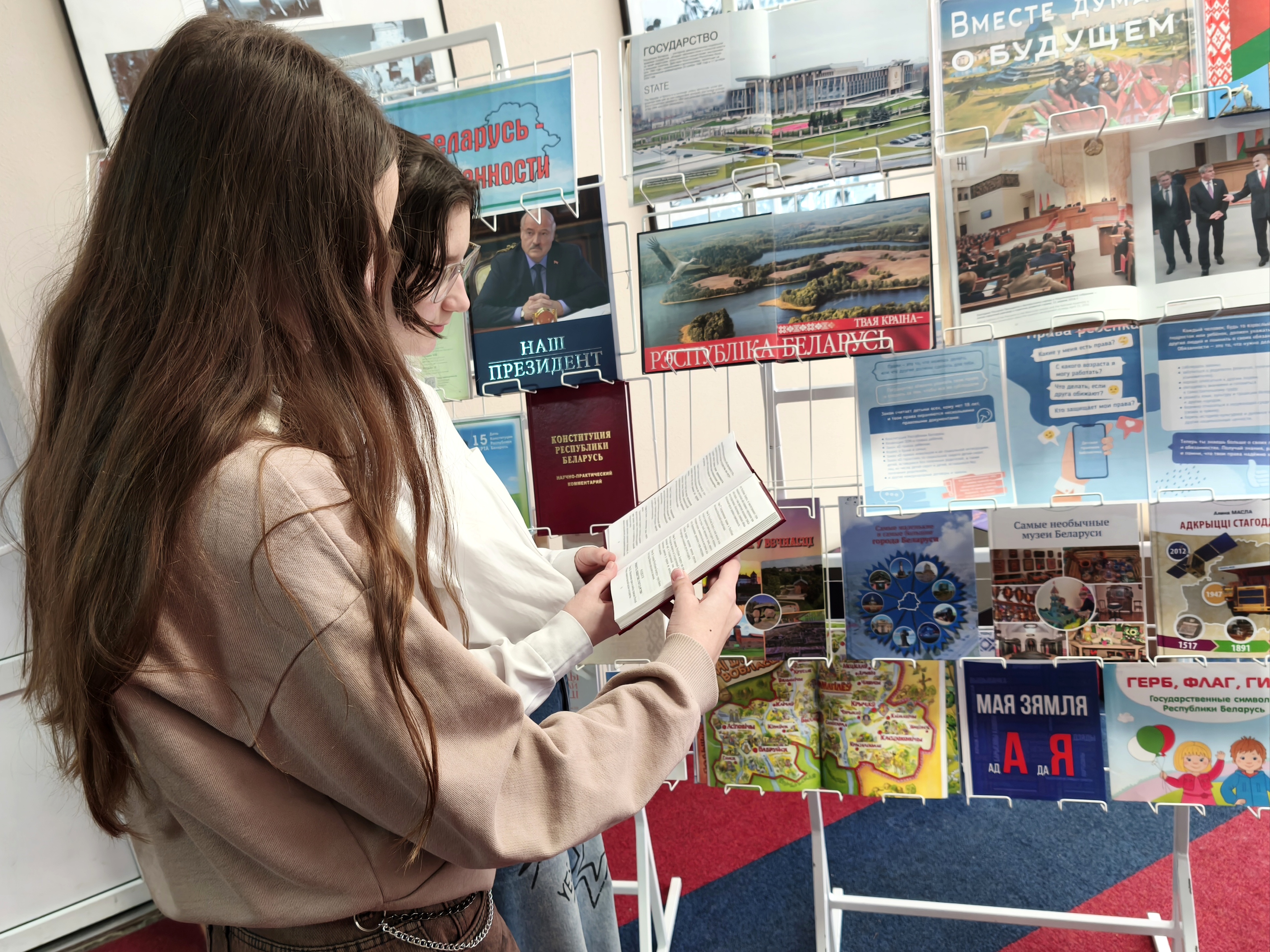 В фойе кинотеатра тематическая выставка детской библиотеки-филиала имени А.С.Пушкина познакомила зрителей с историей становления и развития конституционного права в Беларуси.