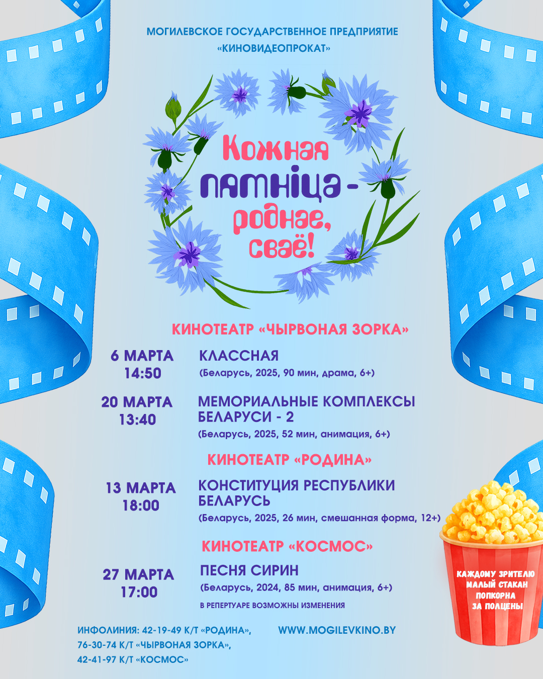 В рамках проекта "Кожная пятнiца - роднае, сваё!" мы продолжаем радовать наших зрителей фильмами отечественного производства! Это отличный повод открыть для себя новые грани белорусского кинематографа, а также насладиться вкусом попкорна всего за полцены!