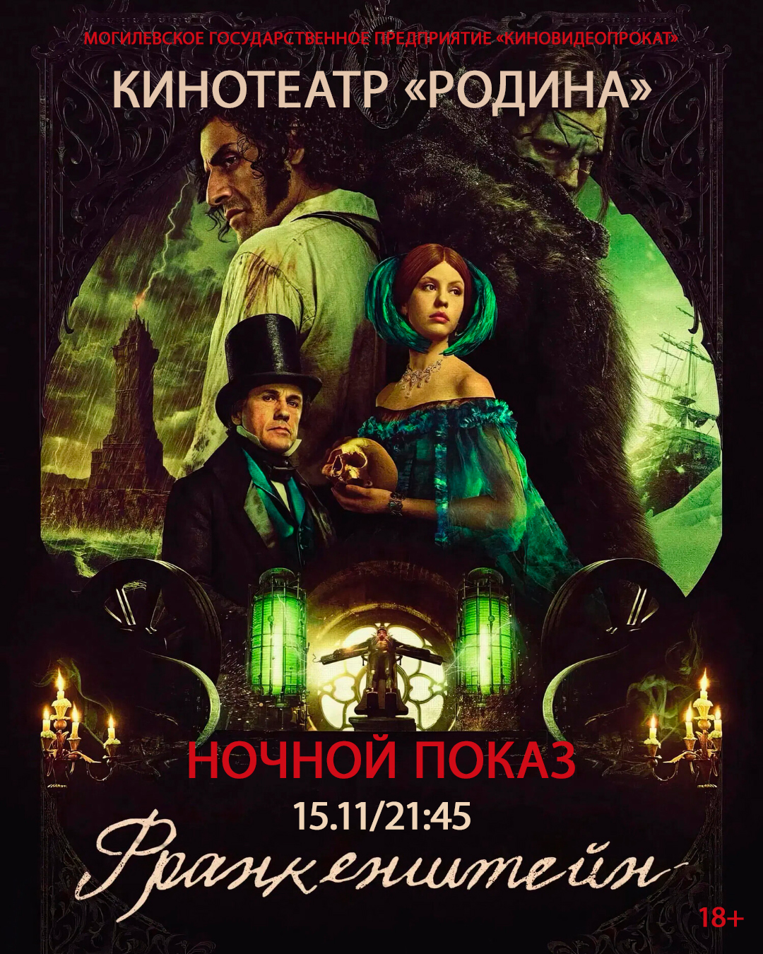 15 ноября в 21:45 кинотеатр «Родина» Могилевского государственного предприятия «Киновидеопрокат» приглашает на НОЧНОЙ ПОКАЗ фильма «Франкенштейн».