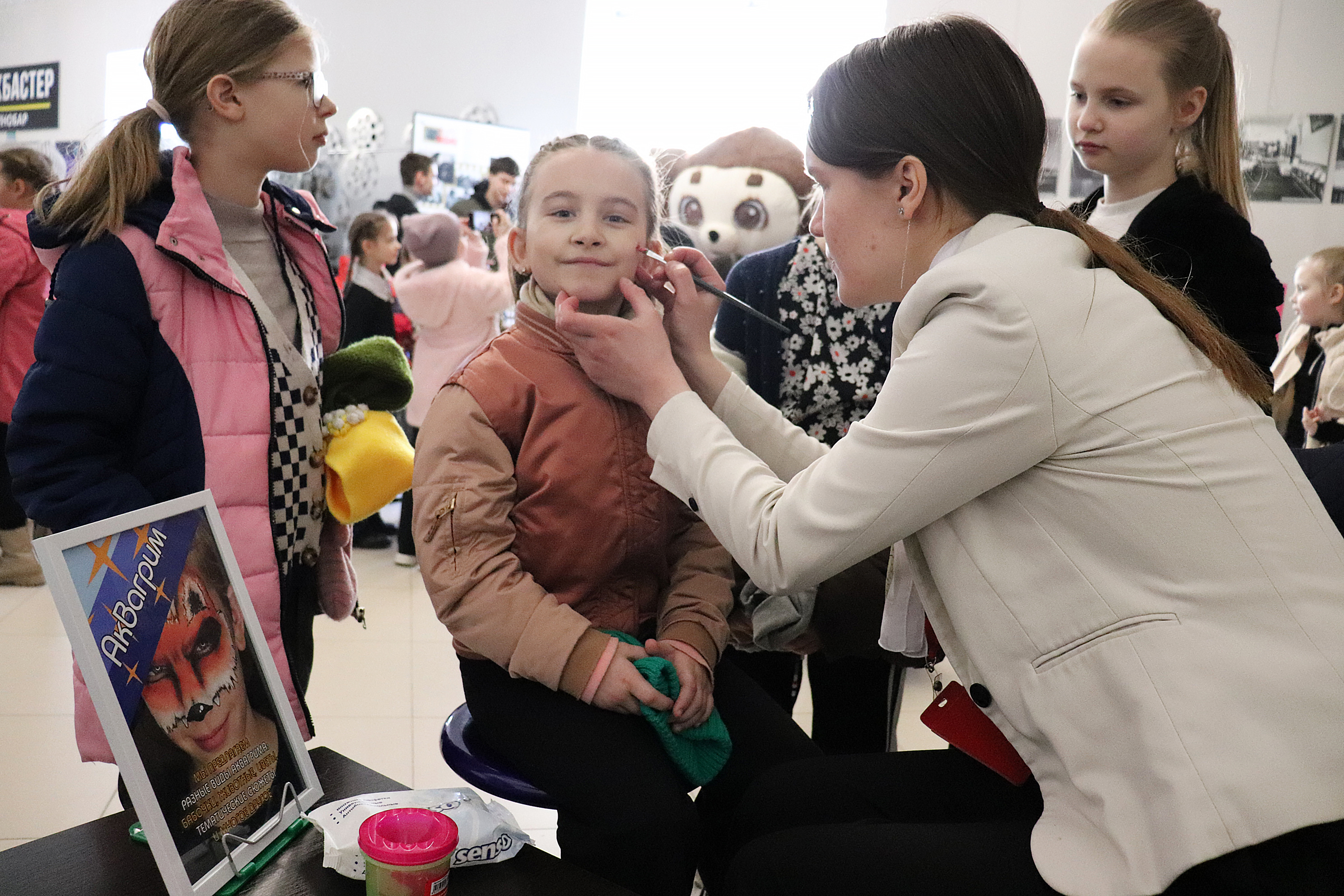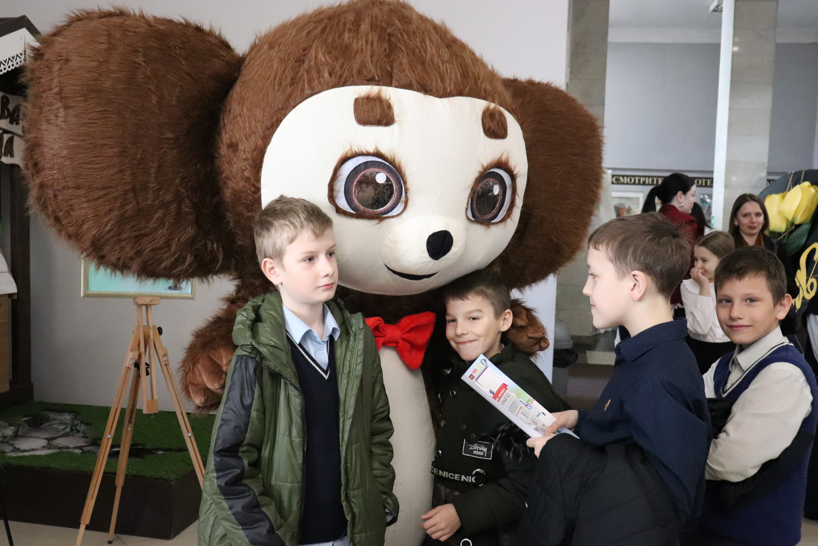 Перед показом юных зрителей ждала насыщенная программа: интерактивная площадка, встреча с Чебурашкой, выставка «Детям о безопасности», аквагрим.