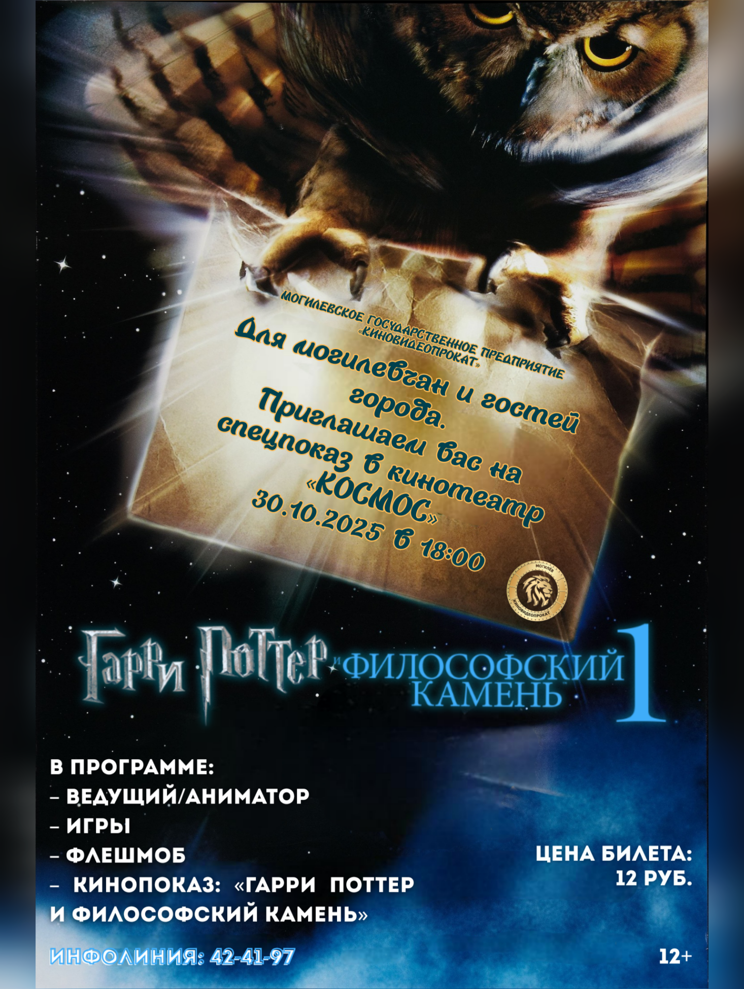 30 октября в 18:00 кинотеатр «Космос» Могилевского государственного предприятия «Киновидеопрокат» приглашает на спецпоказ легендарного фильма «Гарри Поттер и философский камень» – с атмосферой, достойной Хогвартса!
