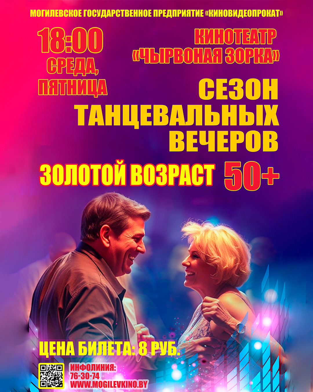 Уважаемые дамы и господа! Приглашаем вас в кинотеатр «Чырвоная Зорка» на танцевальные вечера «Золотой возраст – 50+»!