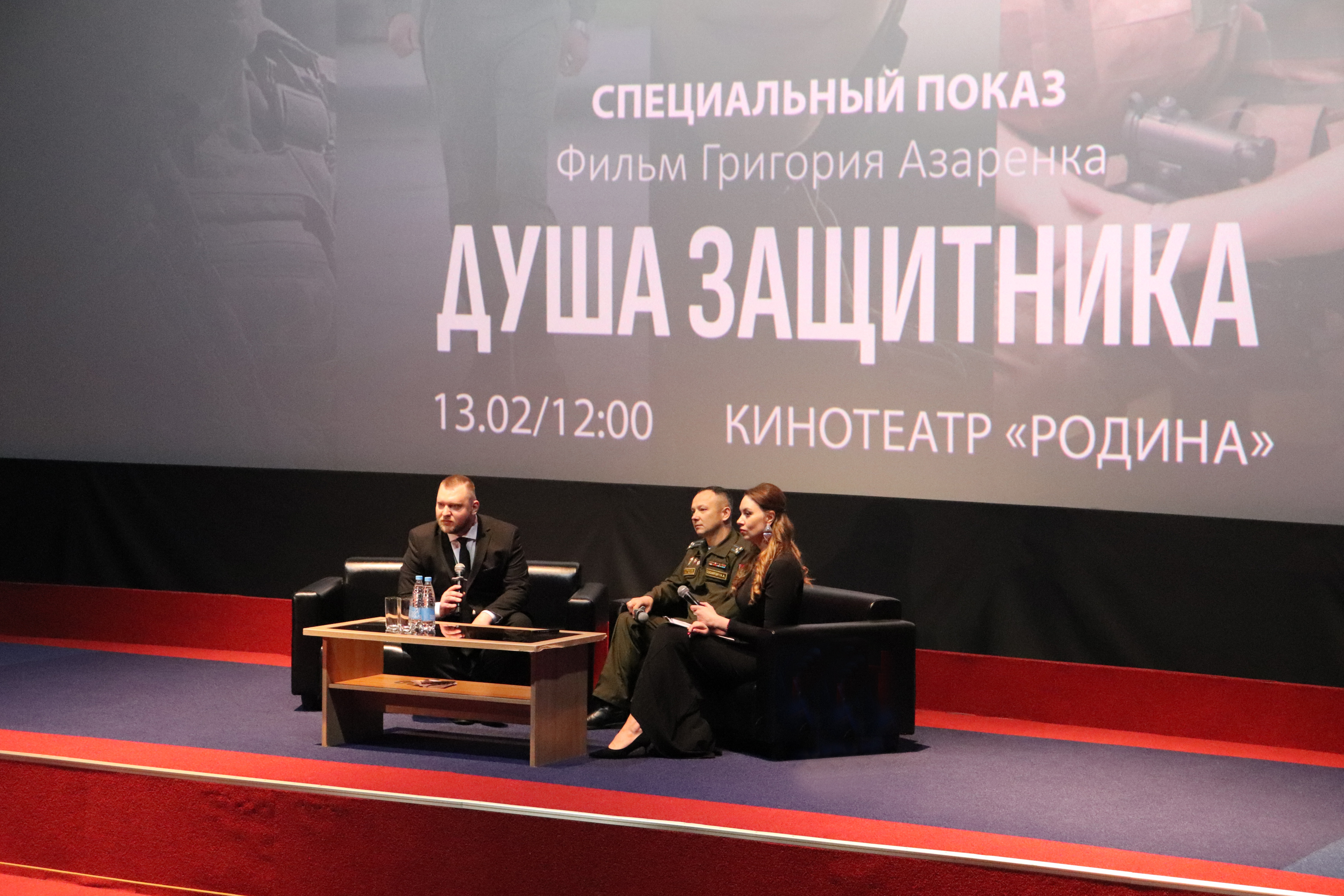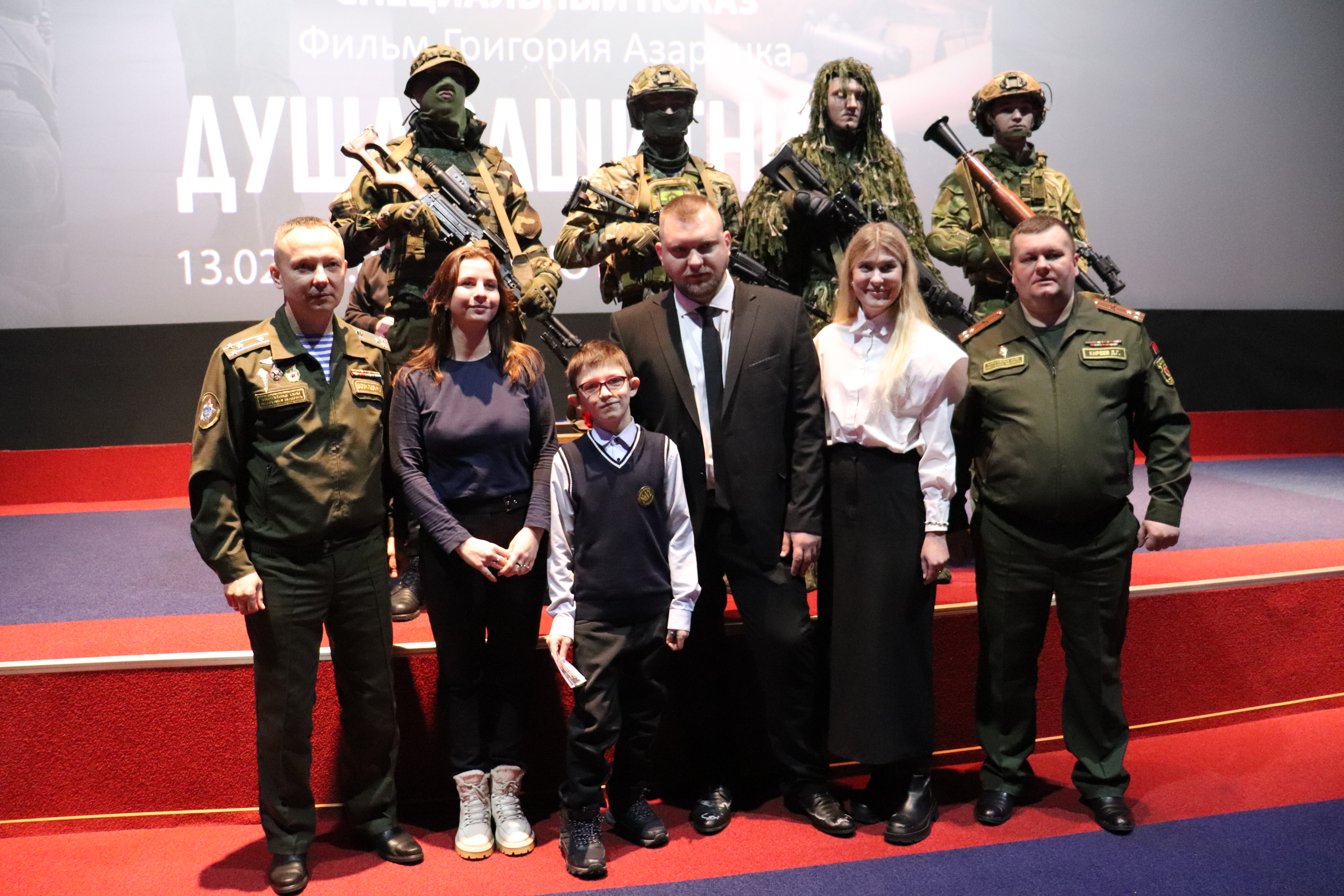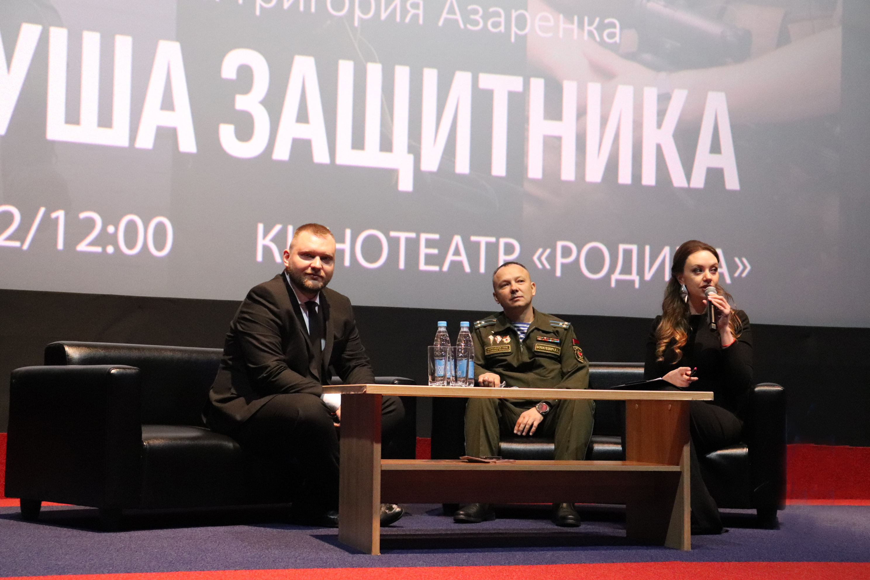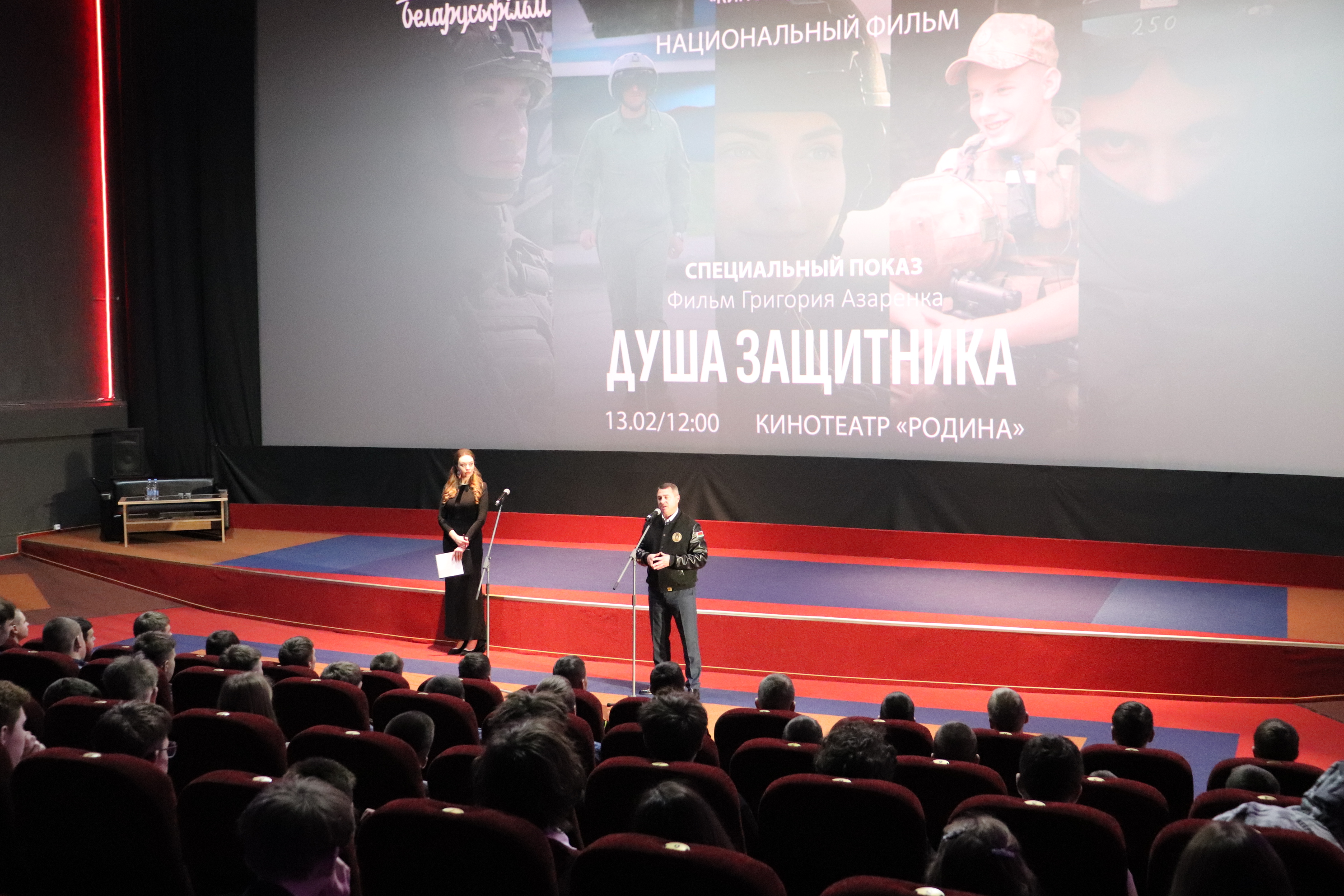 13 февраля в кинотеатре «Родина» Могилевского государственного предприятия «Киновидеопрокат» на специальном показе документального фильма «Душа защитника» могилевчане встречали белорусского телеведущего, журналиста, режиссера Григория Азарёнка и консультанта фильма, начальника отдела идеологической работы командования сил специальных операций Вооруженных Сил полковника Вадима Бобилевича.