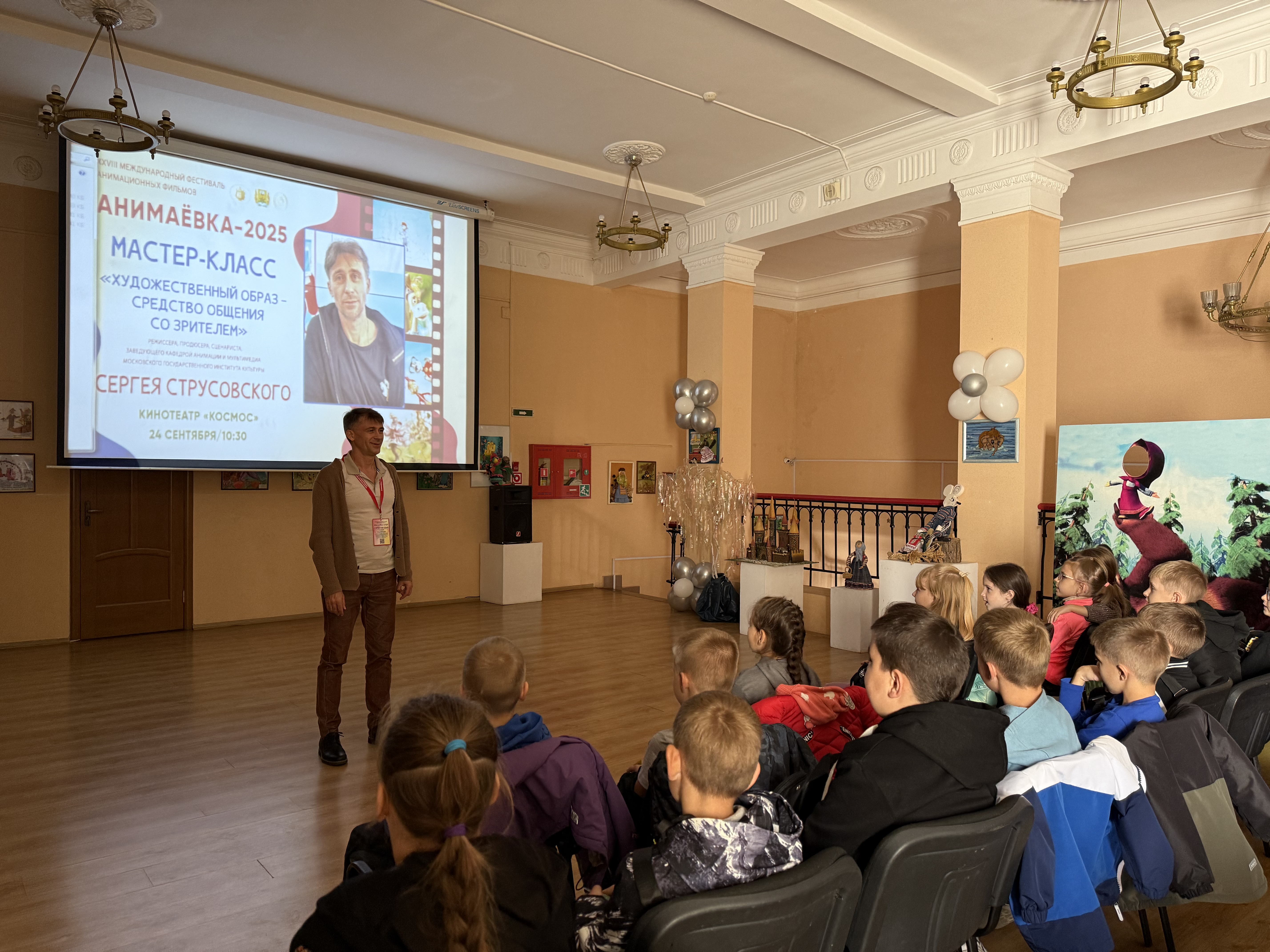 Сергей Струсовский рассказал юным участниками о том, как в своем телефоне можно создавать захватывающие анимационные фильмы.