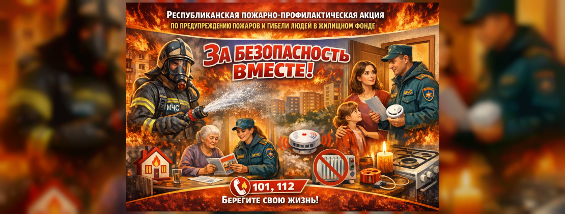 В целях повышения уровня культуры безопасности среди населения Министерством по чрезвычайным ситуациям в период с 7 по 15 марта организовано проведение республиканской пожарно-профилактической акции по предупреждению пожаров и гибели людей от них в жилищном фонде «За безопасность вместе».