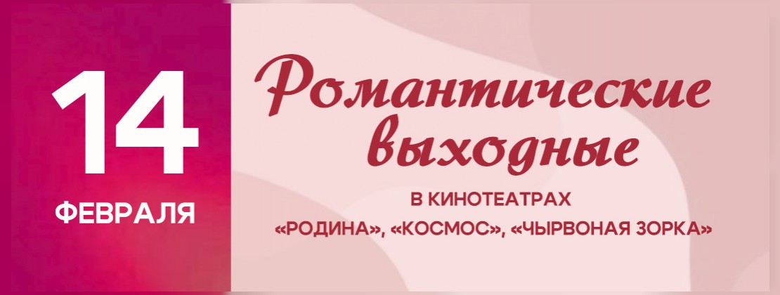 Романтические выходные в кинотеатрах 05.02.2026 14 февраля погрузитесь в мир любви и кино на романтических выходных в кинотеатрах Могилевского государственного предприятия «Киновидеопрокат»!