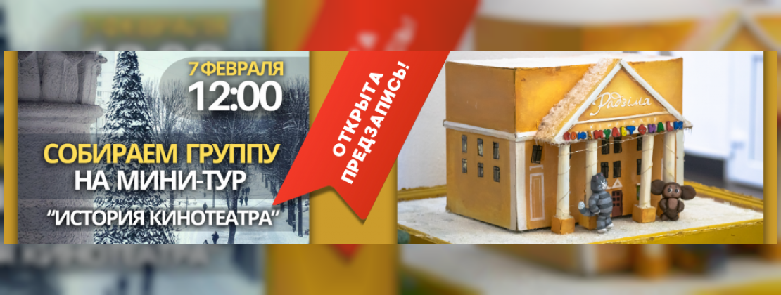 Открыта запись на мини-тур "История кинотеатра "Родина"! 30.01.2026 7 февраля приглашаем вас в увлекательное путешествие по одному из старейших кинотеатров города.