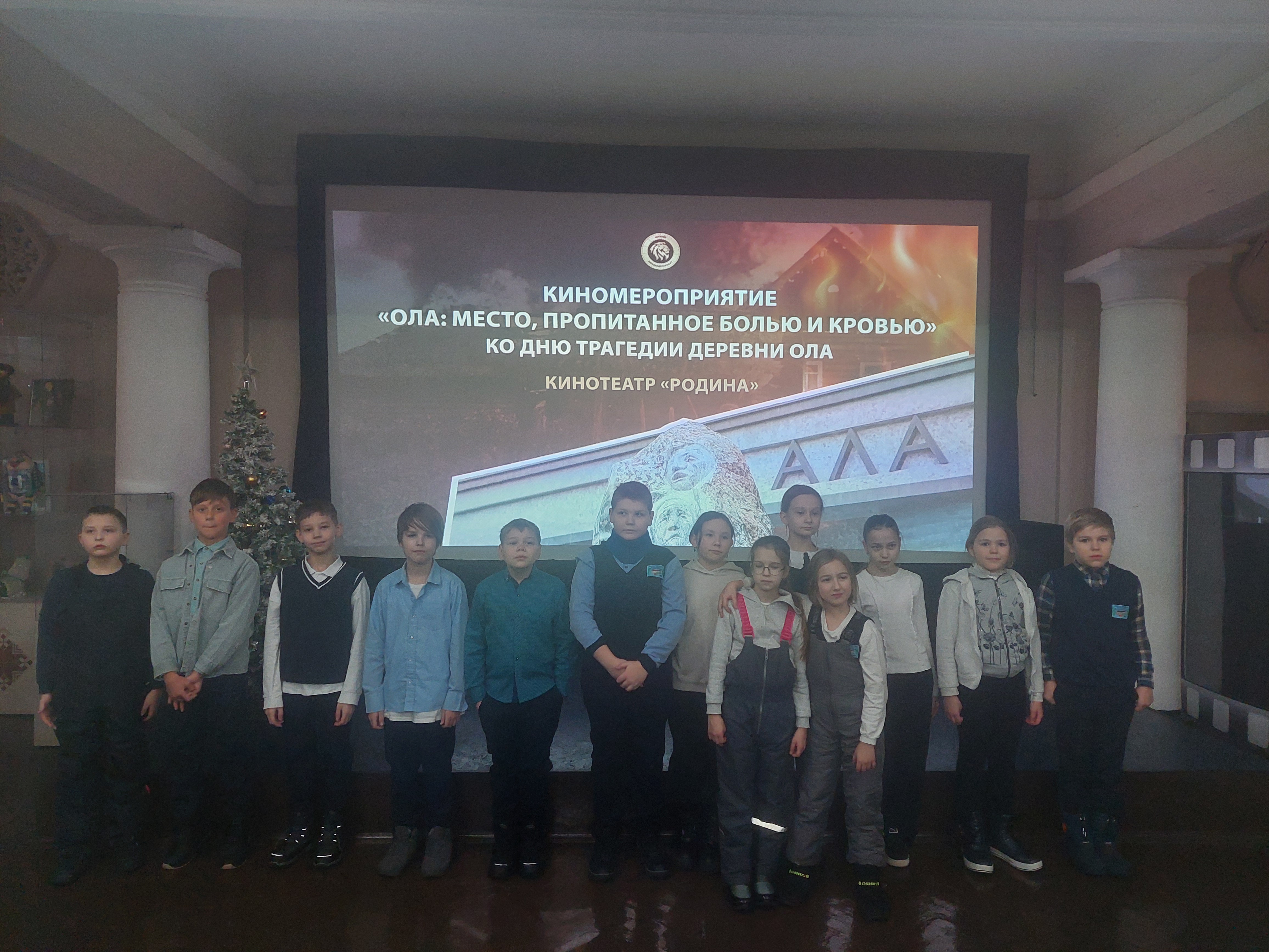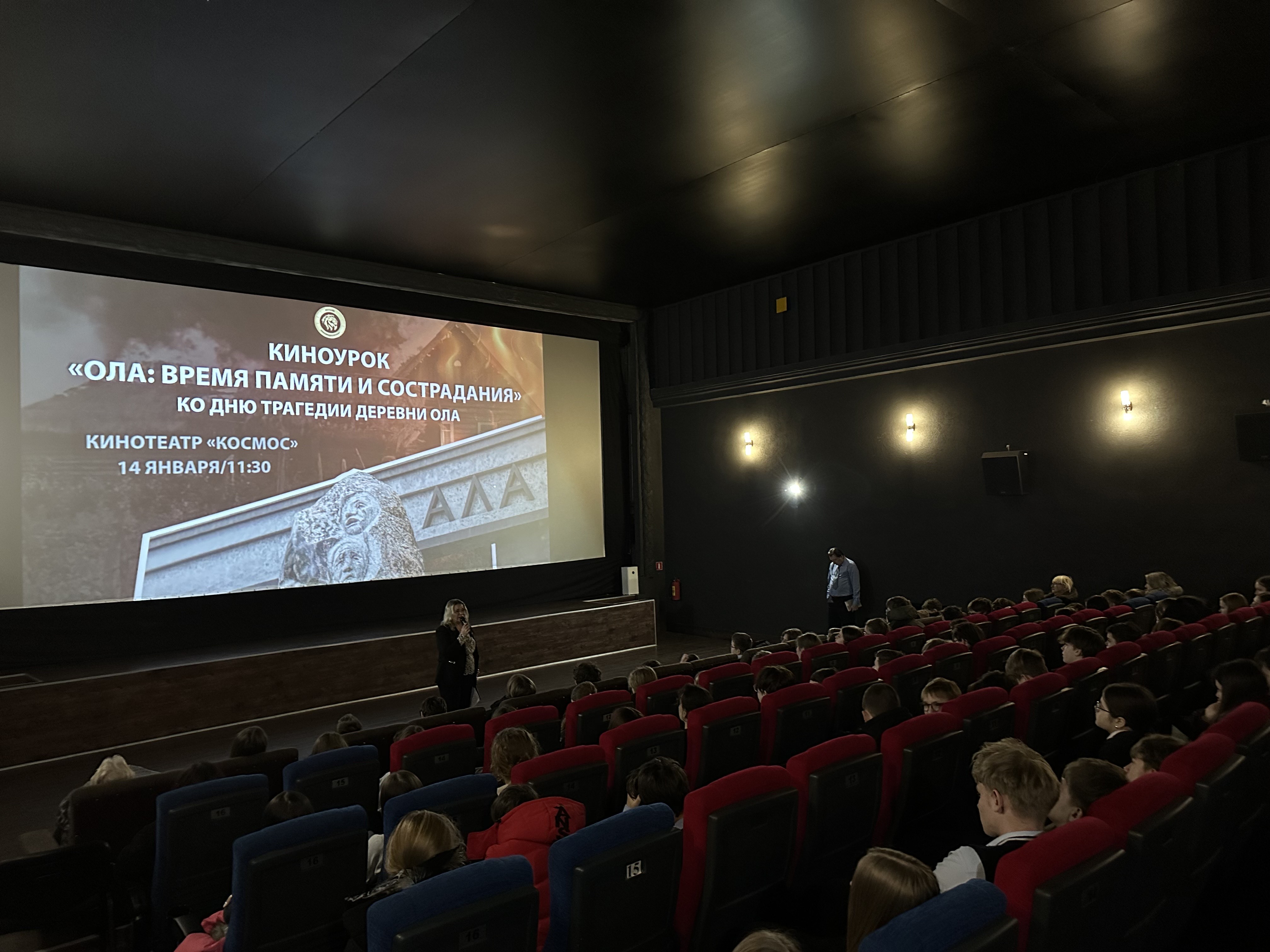 В ходе киномероприятия «Ола: место, пропитанное болью и кровью», прошедшего в кинотеатре «Родина», ребята узнали о трагедии деревни Ола из сохранившихся воспоминаний выживших.